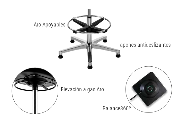 Pensado para que el usuario regule la altura de la banqueta en la posición más cómoda para trabajar con mayor comodidad.